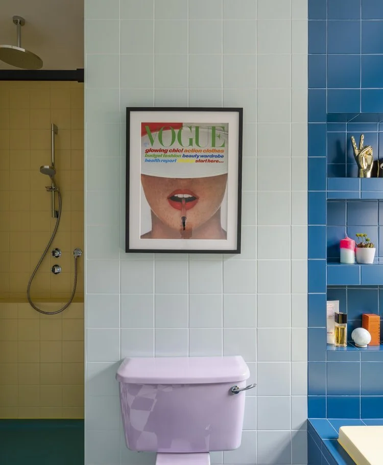 The bathroom tiles send me a little crazy I love them so much, colour blocking at it’s finest. The balance of the cool blues with the energy of the yellow is just perfect.
