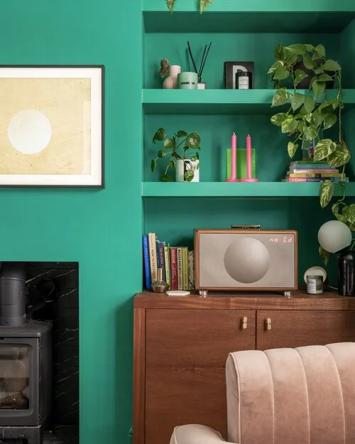 This for me, is a perfect green for a bedroom. It’s got a soothing quality but also feels fresh and modern. It looks fabulous with the pops of Rose and mustard. It was fantastic meeting Bo, her house is off the scale amazing, her colour choices are food for the soul. And don’t get me started on her leopard print office wallpaper (also on my grid). A joy to behold.